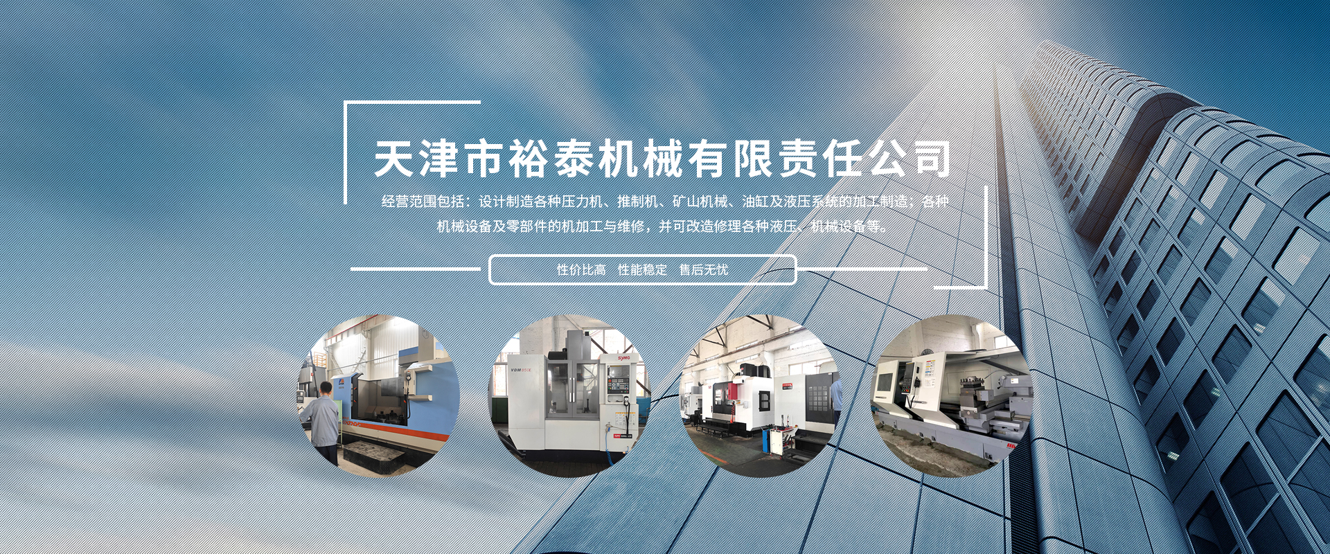 天津市裕泰機械有限責任公司成立于1998年,多次被區、鎮政府評為文明企業,公司占地面積7500平方米,四個生產車間30多臺配套生產設備,經營范圍包括:設計制造各種壓力機、推制機、礦山機械、油缸及液壓系統的加工制造;各種機械設備及零部件的機加工與維修,并可改造修理各種液壓、機械設備等。經過不斷的努力創新我公司成為中國第一重型機械廠、第二重型機械廠、上海重型機械廠、首鋼、鞍鋼、南鋼、北京冶金自動化設計院、北京電力設備總公司等多家公司的加工基地,經合作我們產品也銷往德國、意大利、美國、日本、印尼等國家和地區,并已在一些國家重點項目中使用。